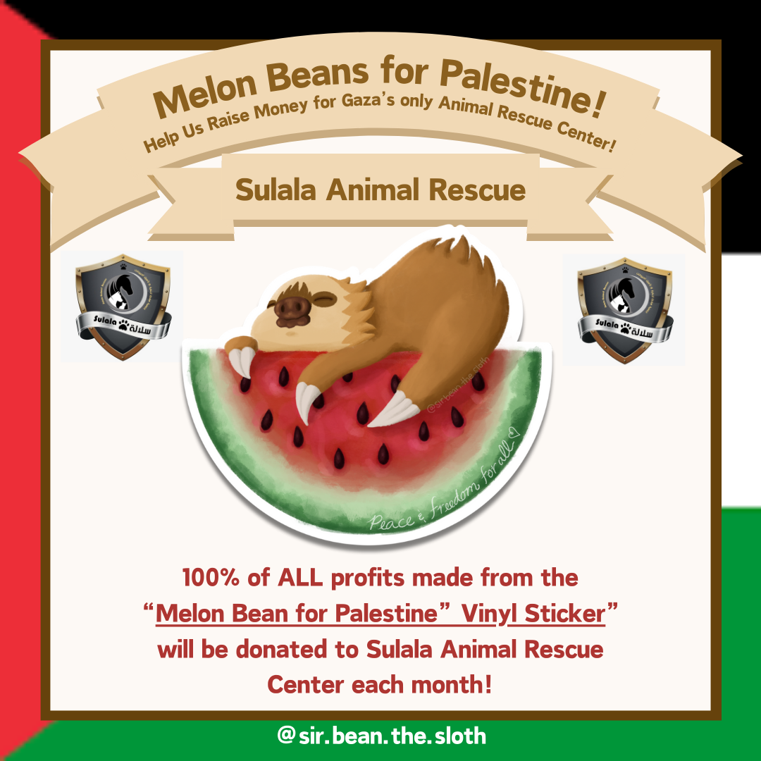 Check out our new sticker to help raise money for stray animals in the Gaza strip that are struggling from the long-lasting occupation. 100% of all profits made from this product will be donated to Sulala Animal Rescue, the ONLY rescue center in the Gaza strip, at the end of each month!