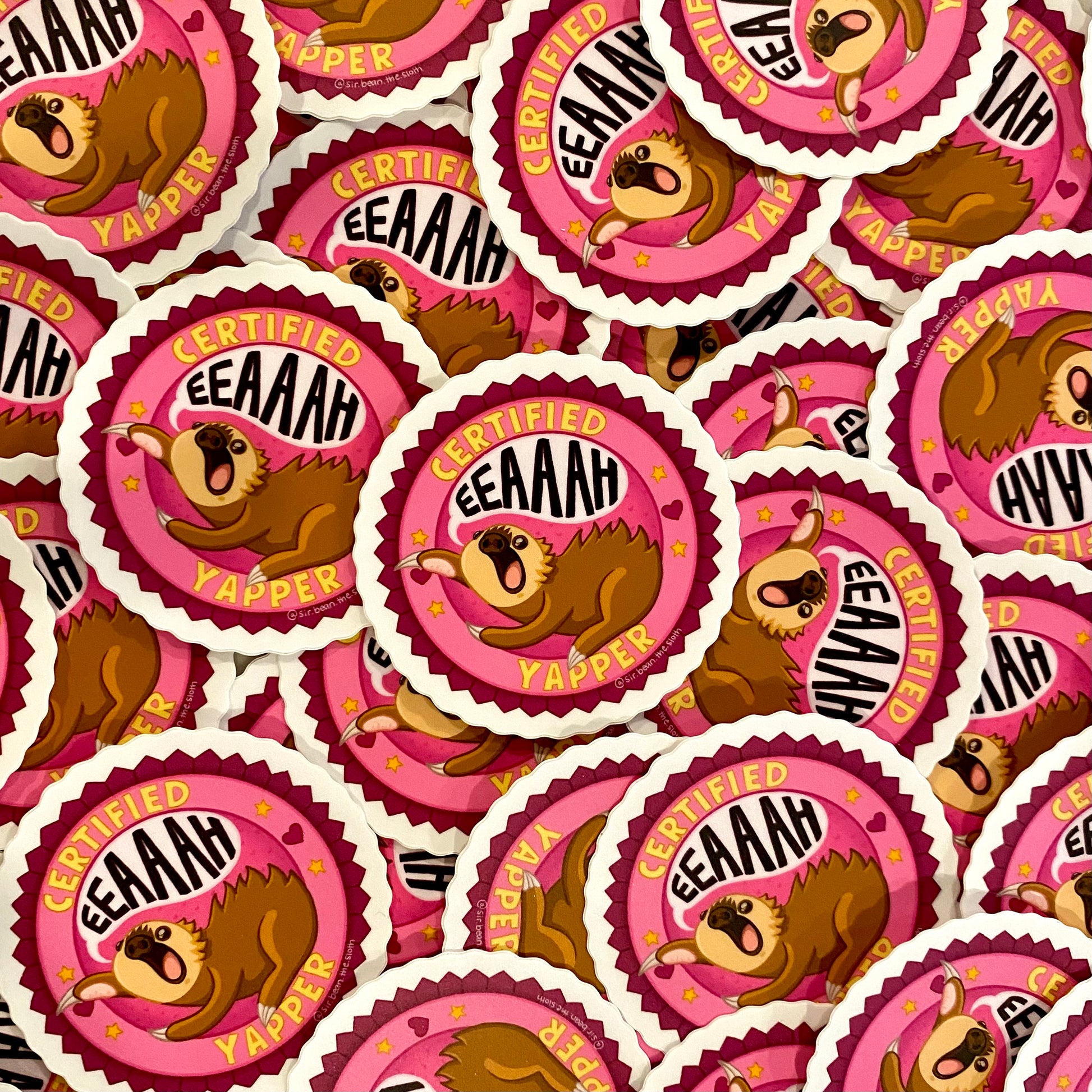 CERTIFIED YAPPER Sir Bean Sloth Badge Vinyl Sticker