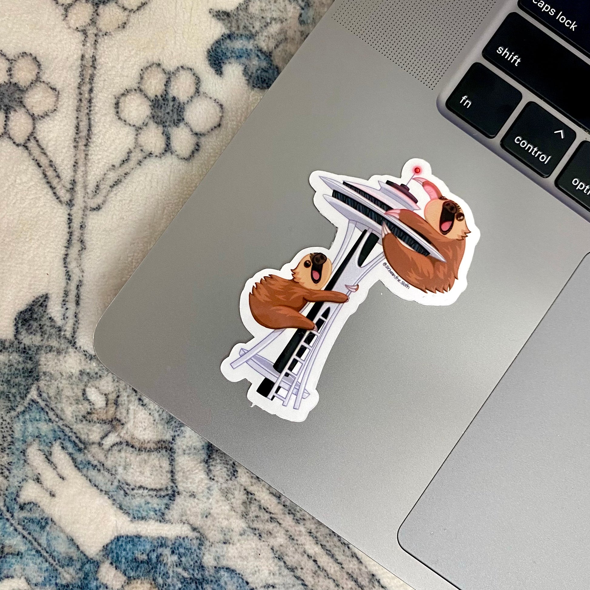 Image Description: A doodle of Seattle's Space Needle with 2, 2-fingered sloth hanging on either side of the building.