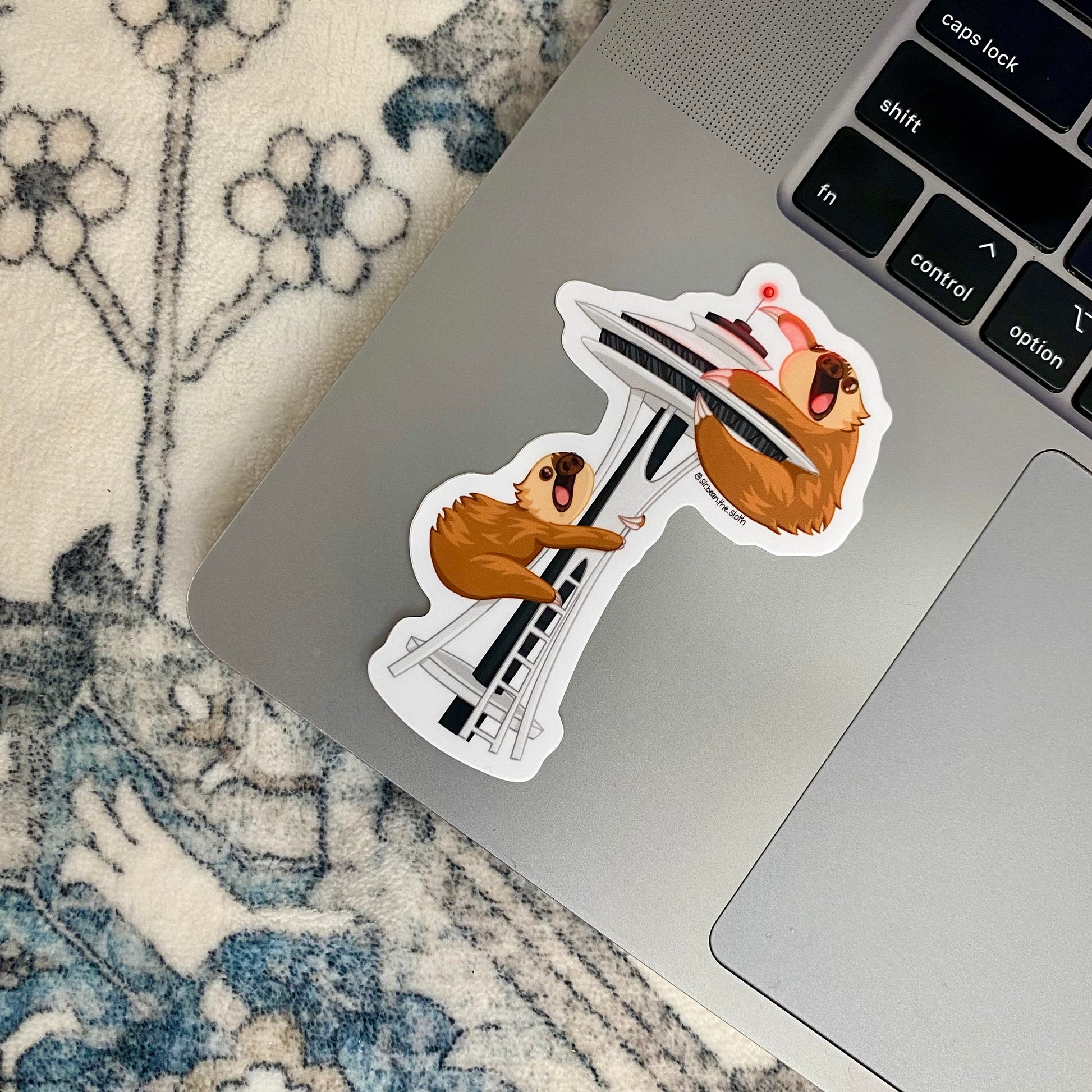 Image Description: A doodle of Seattle's Space Needle with 2, 2-fingered sloth hanging on either side of the building.